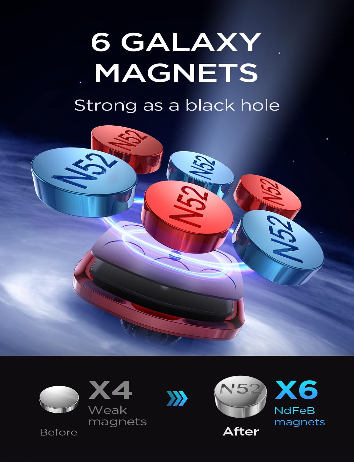 - 👍2X COST EFFECTIVE: This 2 PACK magnetic car mount, will be the most rational and sensible choice for you. This 2 pack magnetic phone mount is equipped with a hook design clip, 6 super strong neodymium iron boron magnets, and an anodized magnesium metal magnetic mount, 6 metal plates, and a lot of high-quality materials at any cost. Our 2 pack magnetic phone holder for car not only has the same high quality as the one pack but also can save you more than 40% than buying one by one.