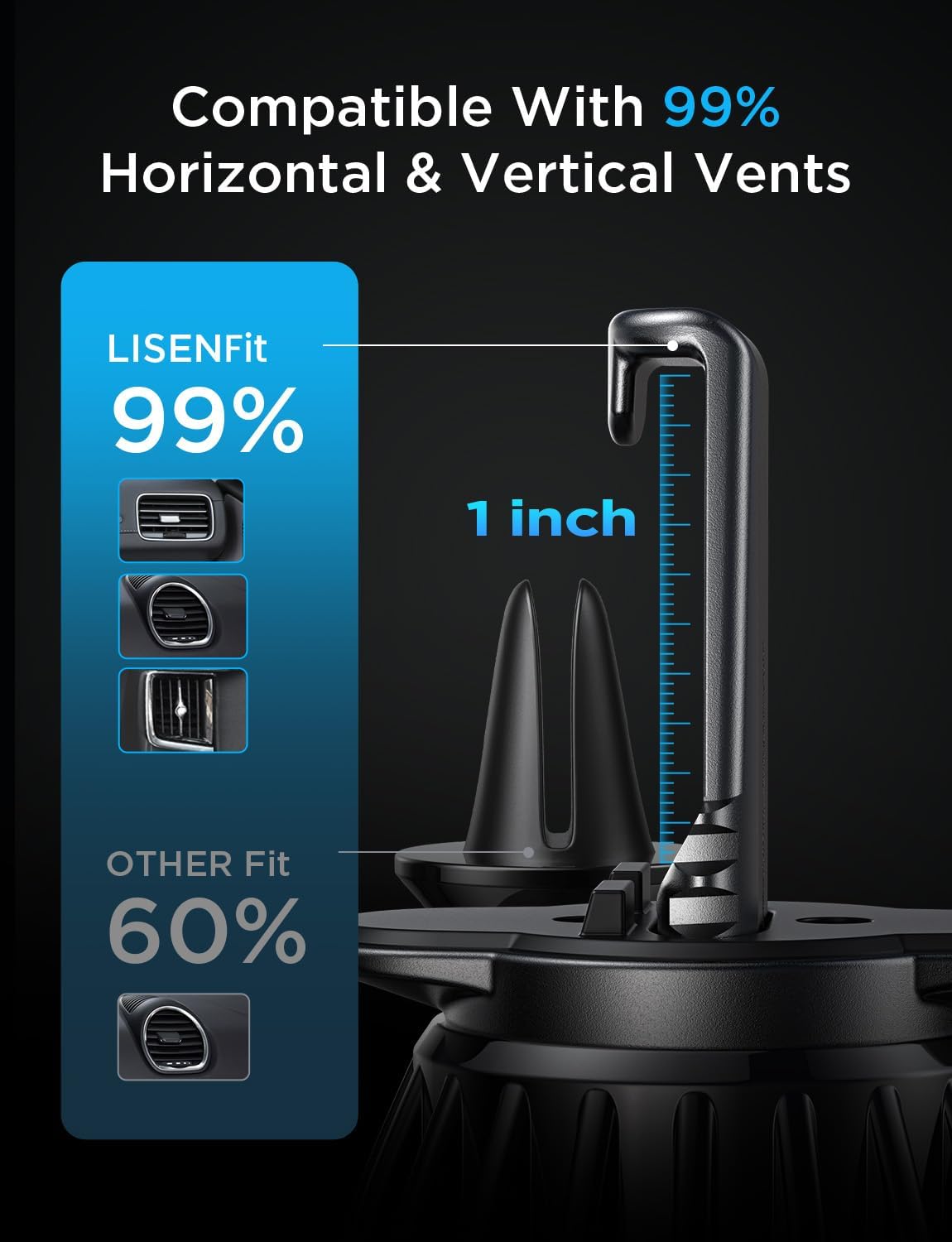 - 👍 CONVINCING QUALITY & UNIVERSAL COMPATIBILITY: LISEN car phone holder won SGS RoHS & SGS CP65 official certification and passed the magnetic force, telephone signal, hook stability and ingredient safety test. Quality is strictly controlled. The car holder holds most smartphones and mini tablets compatible with iPhone 15 14 13 12 11 pro max / XR / X / 8/7/6/5, Note 9 / Galaxy Note20 U, S24 S23 S22 S21 S20 S10 S9 S8 S7 S6, iPad Air 2 / Mini 3 / Pro 9.7 and more.