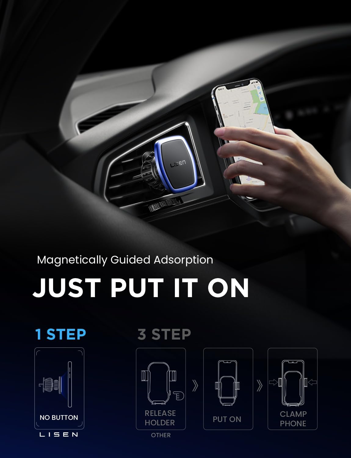- ❤️2 PACK, A GIFT FOR LIFE❤️: With this LISEN 2 pack magnetic vent phone holder, you will have the following happy moment:① FOR ONE CAR: No worries about being bothered by phone calls or music switching while driving to ensure safer driving, your friend can enjoy movies with hands-free operation during long journeys. ② FOR TWO CARS: You can share this 2 PACK magnetic phone holder for cars with your family around and get the happiness of the sharing or use of your two cars.